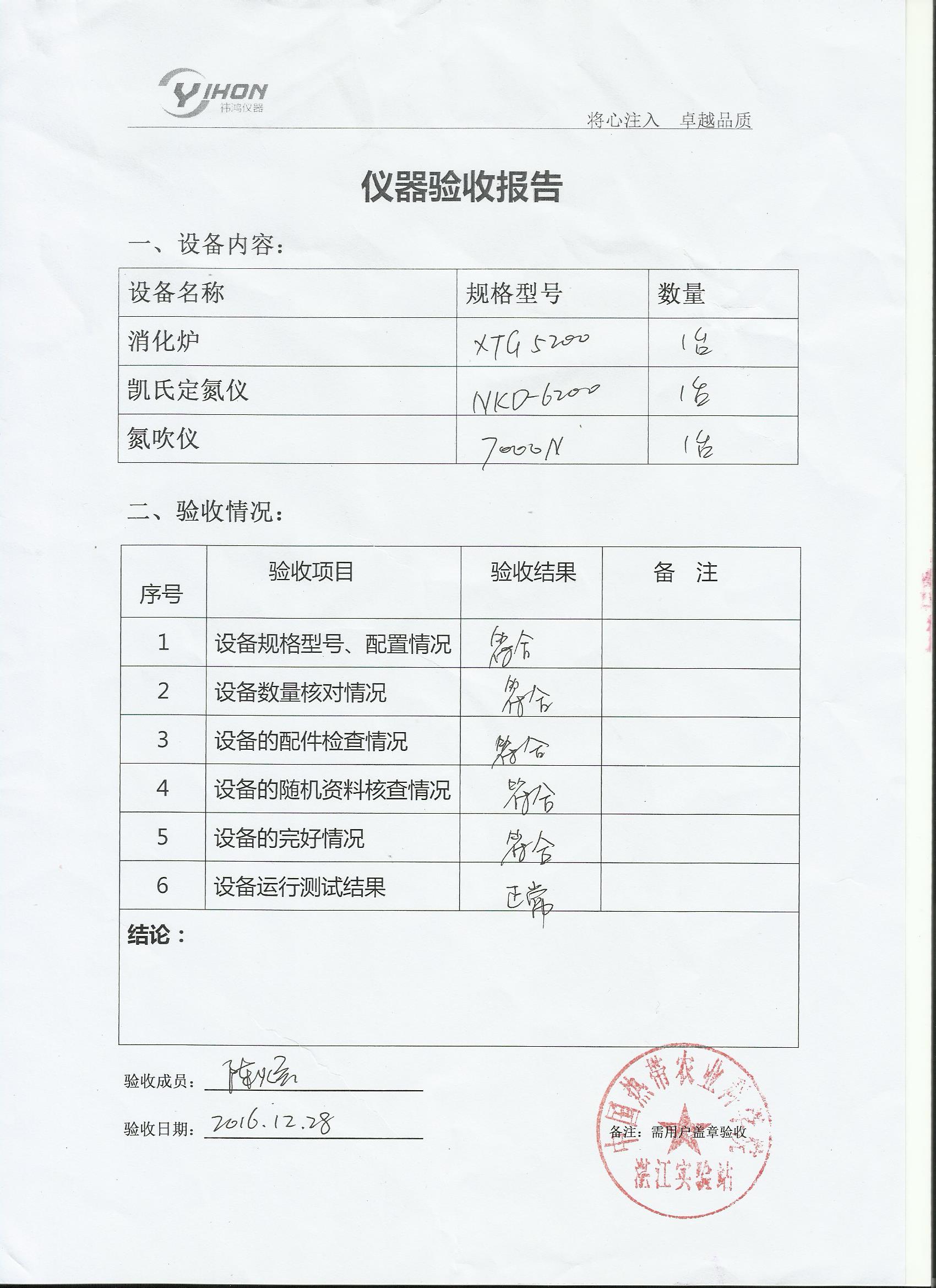 11月中旬中國熱帶農(nóng)業(yè)科學(xué)院湛江實(shí)驗(yàn)站選擇了與上海祎鴻分析儀器有限公司合作。采購我司NKD6200電位法凱氏定氮儀和XTG5200遠(yuǎn)紅外消解儀,廣東湛江農(nóng)林試驗(yàn)站老師在選擇定氮儀特別慎重,經(jīng)過多次技術(shù)交流,特別對電位滴定系統(tǒng)和紅外消解儀技術(shù)感興趣,反復(fù)多次試驗(yàn)數(shù)據(jù)認(rèn)證以及人性化友好操作界面深深的打動了老師,以及完善的銷售售前支持后售后服務(wù)解決方案,都得到了老師的認(rèn)可。最終達(dá)成合作,我們將一如既往的服務(wù)好用戶,讓用戶滿意。