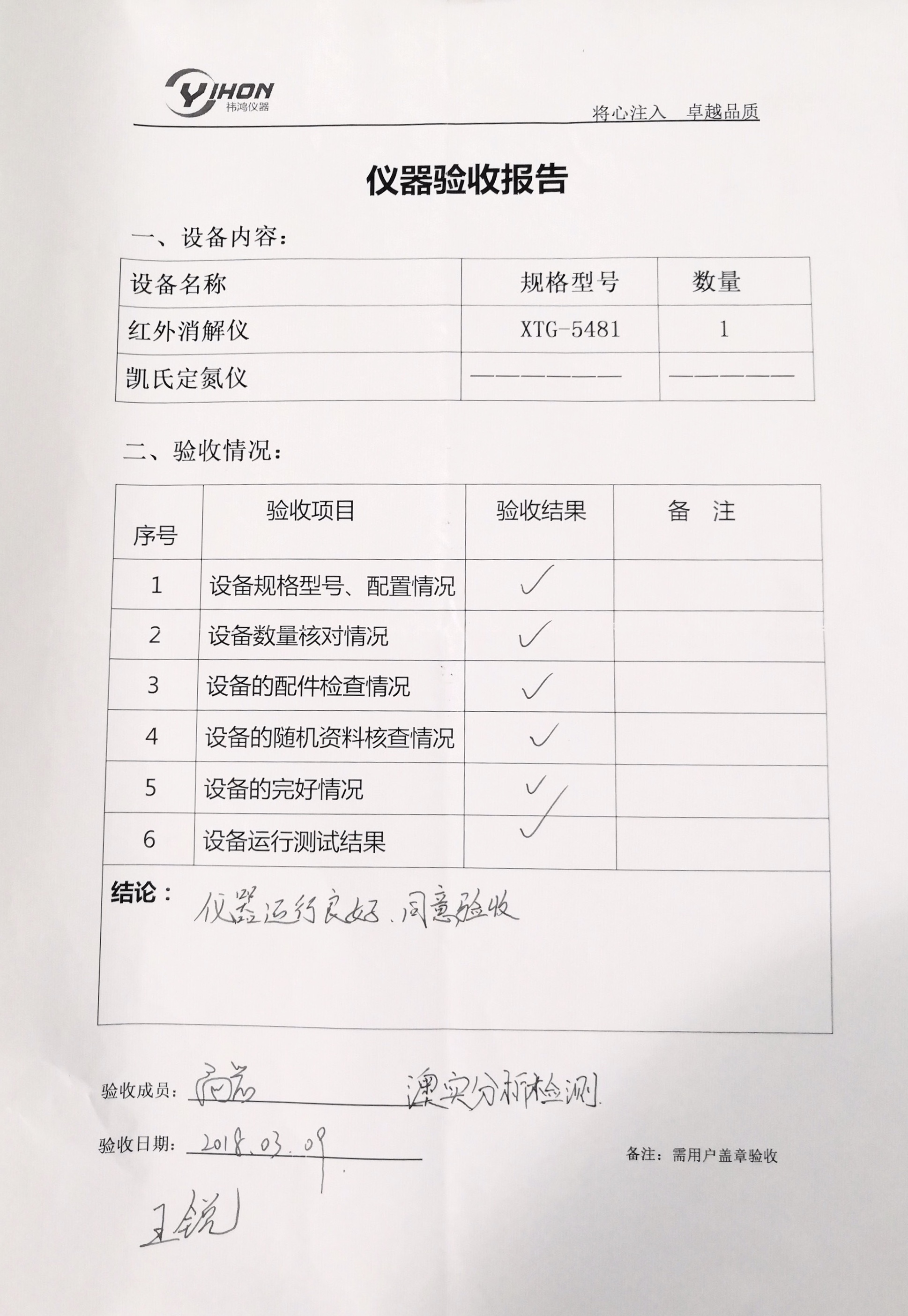 上海祎鴻工程師于三月到現場調試安裝,客戶對祎鴻定氮儀給予高度評價。
