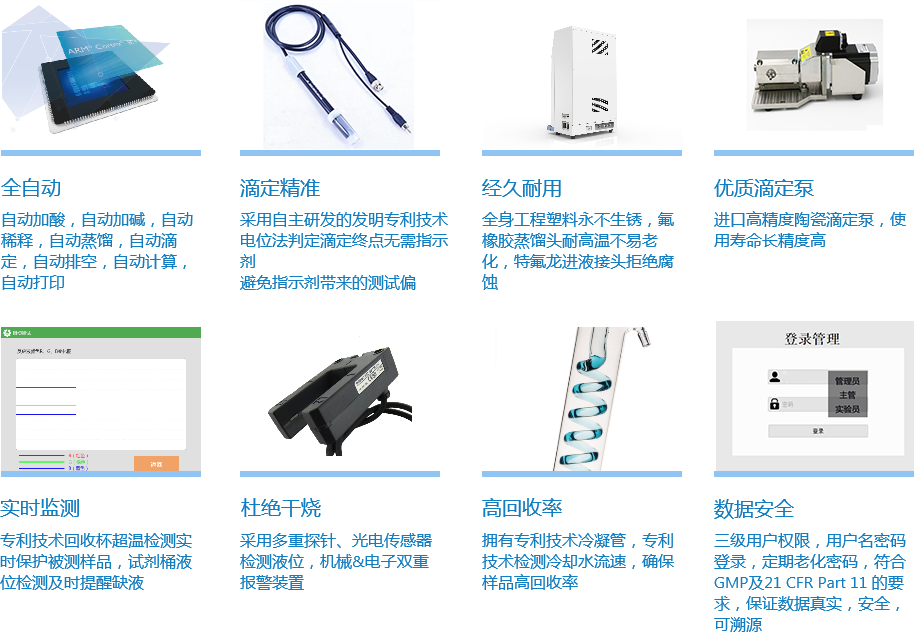 NKD6280凱氏定氮儀利用電位空白法進行終點判定,摒棄了傳統電位法利用PH緩沖液對電極斜率標定的落后方法,提升簡化了操作步驟,減少了對電極繁瑣的維護工作.傳統電位法在測試之前需要用標準的PH緩沖液對電極斜率進行校正,需要溫度傳感器對電極的測量值進行修正。本公司自主技術的電位空白法不需要利用緩沖液對電極進行校正。