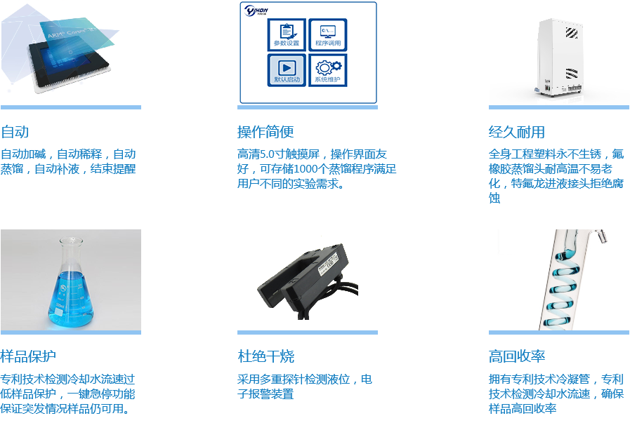 參數(shù)設(shè)定后,儀器自動(dòng)完成樣品稀釋、加堿、蒸餾、吸收及管路淋洗